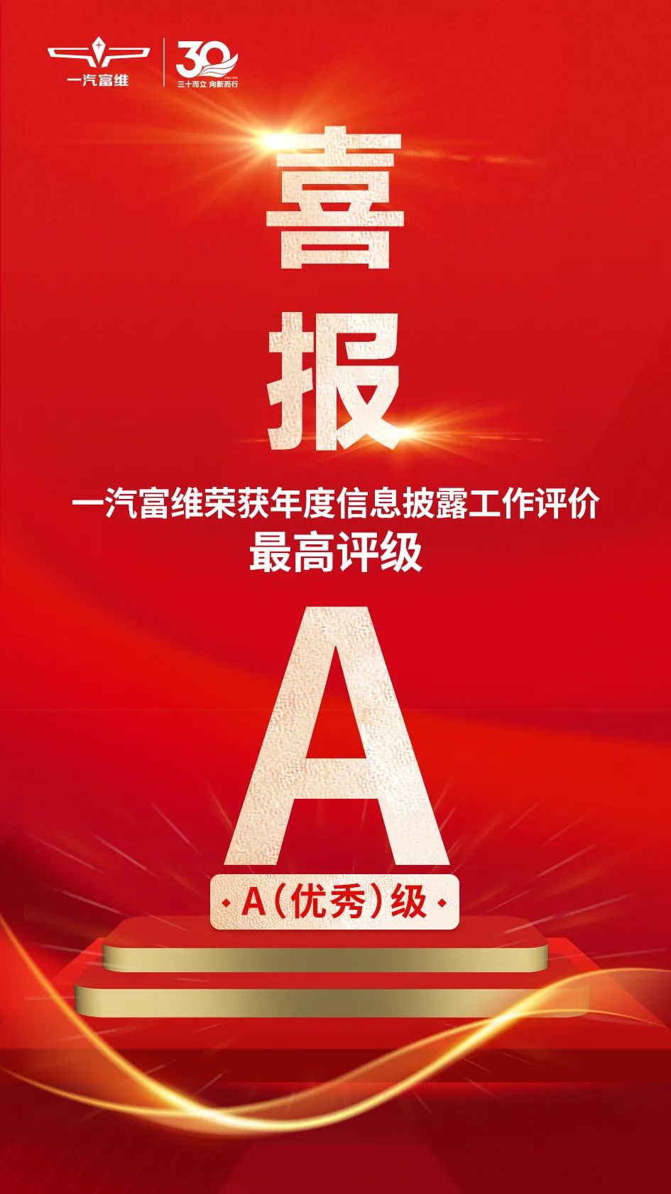 近日,上海证券交易所(以下简称“上交所”)发布《沪市主板上市公司2022至2023年度信息披露工作评价结果》,一汽富维获评最高评级“A”级,这也是一汽富维连续第三年获此殊荣。