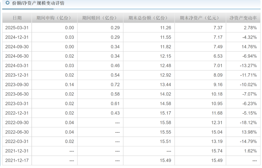 基金业绩下降,基金规模也会出现下降。华安制造升级一年持有混合A基金成立之初募集了15.49亿元,但该基金成立1年后,基金开始放开赎回,也就是2022年4季度末,随后的各季度,基金规模出现下降。截至2025年3月31日,华安制造升级一年持有混合A,期末净资产7.37亿元,比上期增加2.78%,相较于成立之初,基金规模下降了7.76亿元。