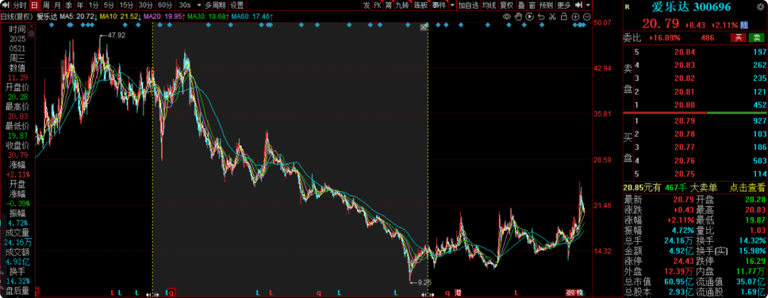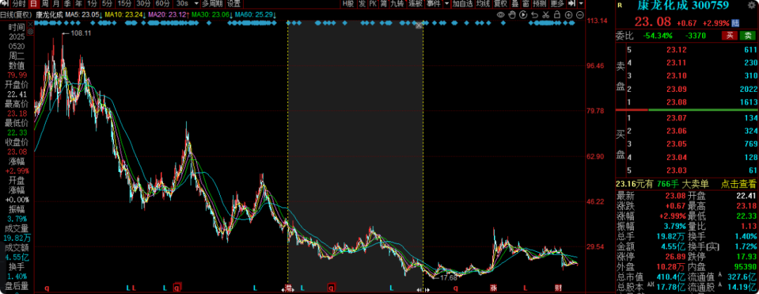 笔者还发现,该基金在2023年4季度买入39.39万股的康龙化成,到了2024年1季度已经没有了此前购买股票份额。然而,在该基金持有期间,在2023年10月9日-2024年3月31日股票价格下跌了34%。2024年2季度又买入39.39万股,2024年3季度持有39.39万股,2024年4季度持有42.47万股,2025年1季度持有42.47万股。然而,在该基金持有期间,在2024年4月1日-2025年5月23日股票价格倒是上涨了15%。