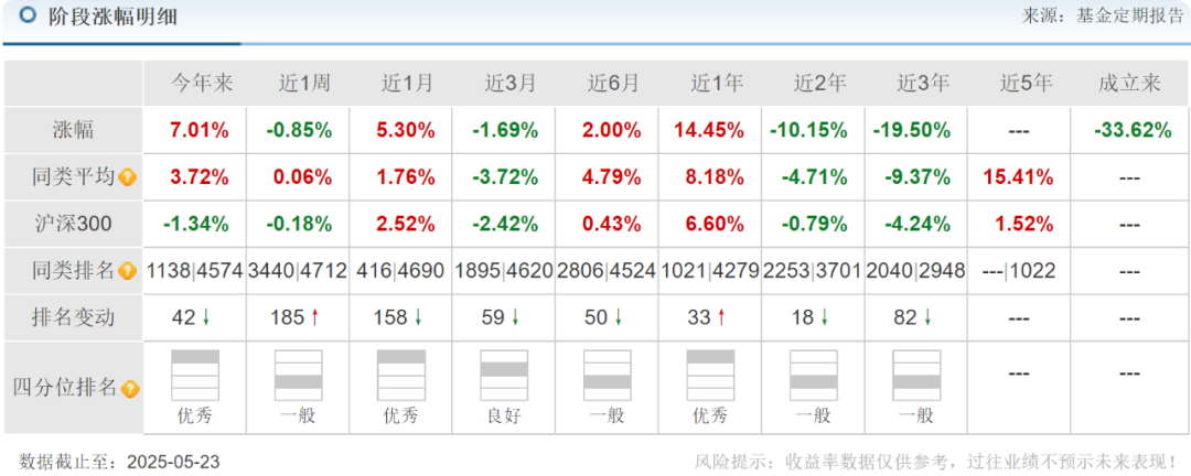 2024年1季度持有176.69万股,2024年2季度持有176.69万股,2024年3季度持有179.21万股,2024年4季度加仓至213.87万股(前十大重仓股首位)。2025年1季度持有213.87万股。然而,在该基金持有期间,在2022年4月1日-2025年5月23日股票价格下跌了35%。