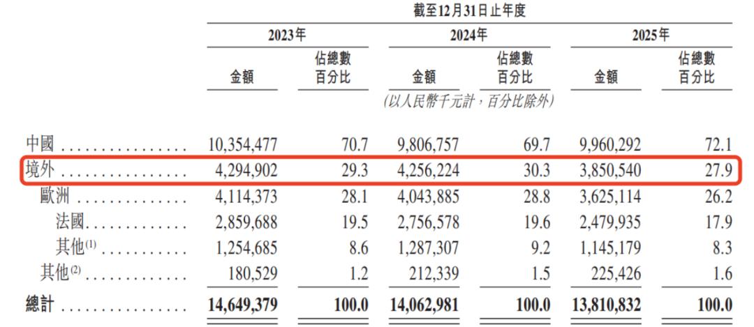 2023年及2025年,公司海外业务毛利率为40.1%、35.9%,低于国内业务毛利率41.1%、38%。
