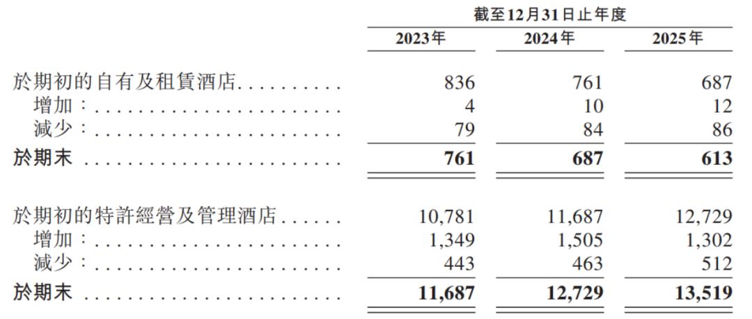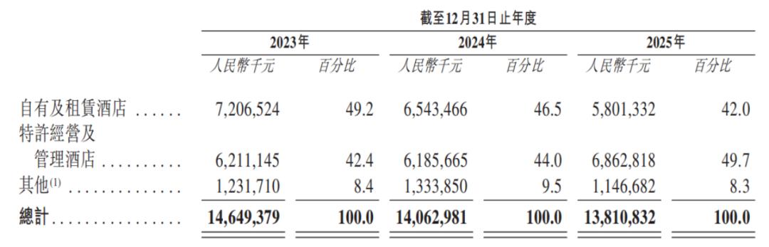 招股书显示,锦江酒店以两种业务模式经营酒店,包括自有及租赁、特许经营及管理。截至2025年末,已开业的特许经营及管理酒店客房间数占总客房间数的比重为94.9%。
