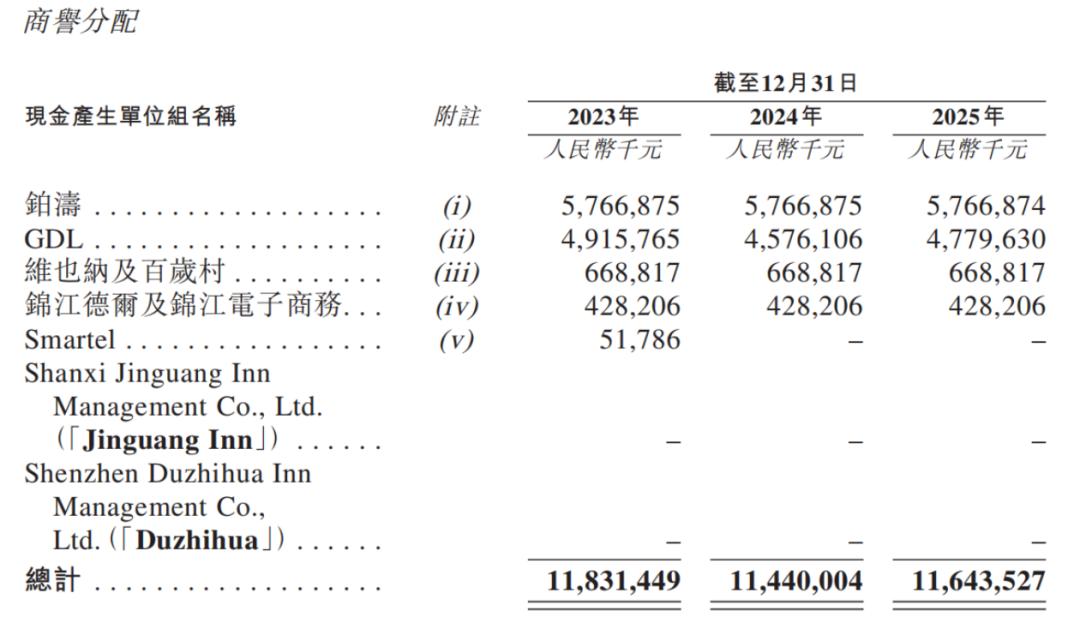 与此同时,锦江酒店大手笔分红。2023年度至2024年度,公司分红金额5.35亿元、5.32亿元;2025年度,锦江酒店计划分红5.44亿元,目前尚未派付。三年分红金额合计16.11亿元,占同期净利润的比例为47.23%。