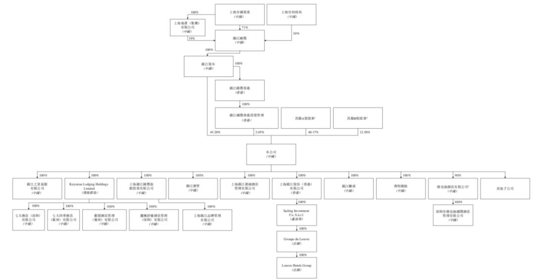递表前,锦江酒店控股股东锦江资本及其一致行动人锦江国际香港,合共持有公司47.26%的股份。公司最终实际控制人为上海市国资委。