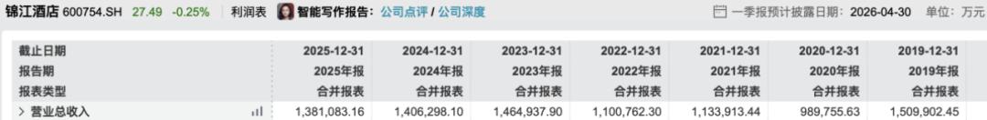 锦江酒店四名执行董事里,只有毛啸领薪,2024年及2025年,毛啸的年薪为93.1万元、99.3万元。