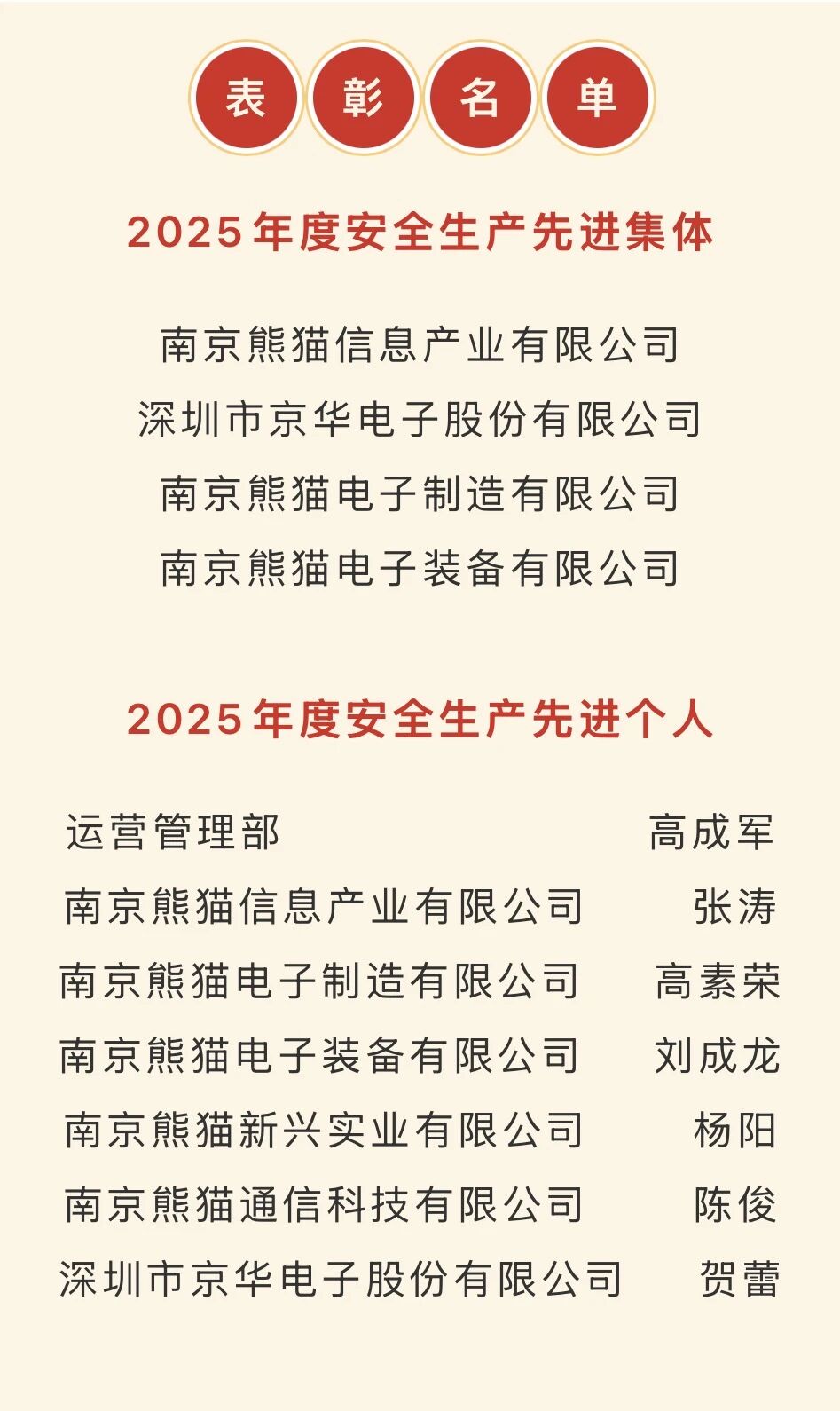 1月22日,南京熊猫电子股份有限公司组织召开2026年安全生产工作会议,全面总结2025年度安全生产工作,部署2026年重点任务,一批安全生产先进集体和个人受到表彰。会议围绕“筑牢安全防线,护航高质量发展”主题,系统分析形势、总结成绩、明确目标,为全年安全生产工作谋篇布局。