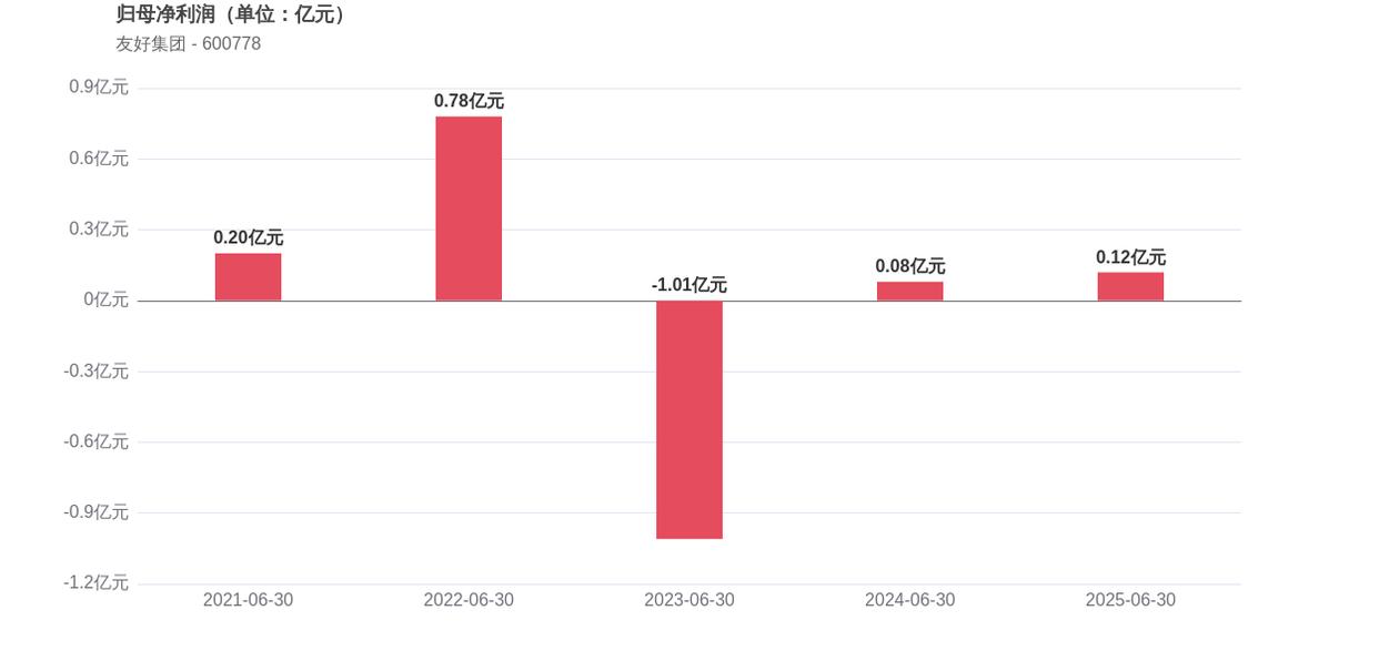 在2025年上半年,友好集团的经营业绩呈现营收下滑但净利润增长的态势,实现营业收入7.89亿元,同比下滑8.54%,归母净利润0.12亿元,同比增长52.93%。引人关注的是二季度归母净利润出现-0.08亿元的亏损,相比一季度减少0.29亿元,环比变动-141.03%。