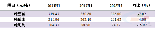 2023年上半年,华新水泥公司的水泥熟料产品销售价格较上年同期下滑7.02%至326.00元/吨,成本较上年同期下降4%至251.62元/吨,受国内水泥及熟料价格降幅较大的影响,导致吨毛利较上年同期下滑15.37%至74.37元/吨。
