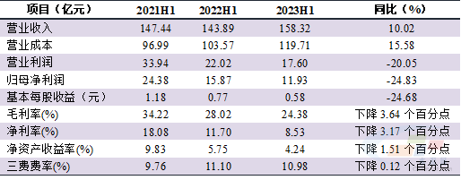 2023年一季度,公司实现营业收入66.28亿元,同比增长1.49%,二季度后增幅进一步扩大,最终上半年营收达158.32亿元,整体同比增长10.02%。