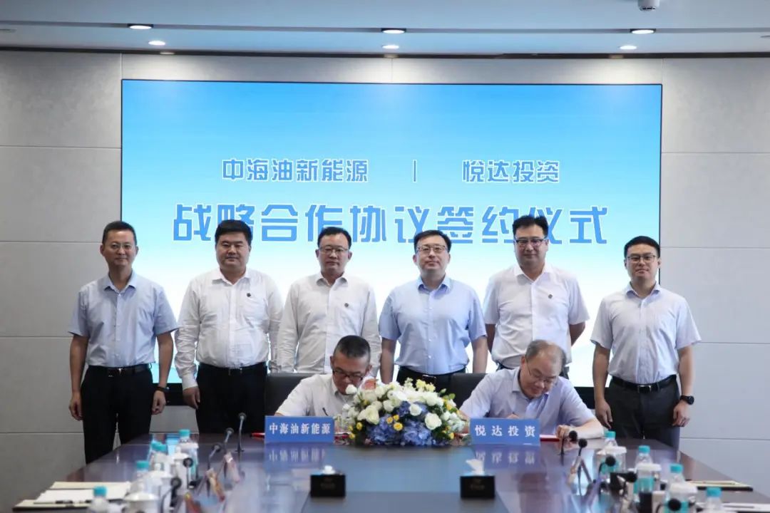 9月2日上午,悦达投资与中海油新能源公司在盐签订战略合作协议。中海油新能源党委委员、副总经理陈戎,悦达集团党委副书记、总经理徐海宁出席活动。