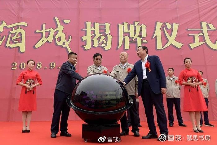 注:汾阳市市委书记武跃飞、汾酒集团公司董事长李秋喜、汾酒集团公司总经理谭忠豹、中汾酒业投资有限公司董事长冯三兔共同按下启动球,为“中国汾酒城”正式揭牌。