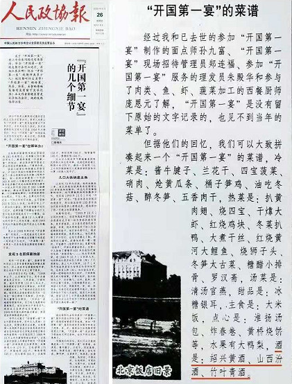 1949年新中国成立,周恩来总理亲点汾酒、竹叶青酒作为开国第一国宴用酒,周总理还带着汾酒参加个各种国际会议,像日内瓦会议、万隆会议,周总理把汾酒作为厚礼馈赠国外友人,可见汾酒的国家名酒风范。