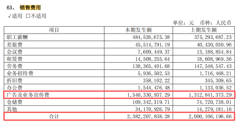 为应对行业存量竞争加剧及政策环境压力,山西汾酒加大了市场端投入力度。2025年上半年,公司销售费用达23.82亿元,较去年同期的20.00亿元增长19.10%。其中,广告及业务宣传费为15.40亿元,同比增长17.33%,是销售费用的主要构成部分。