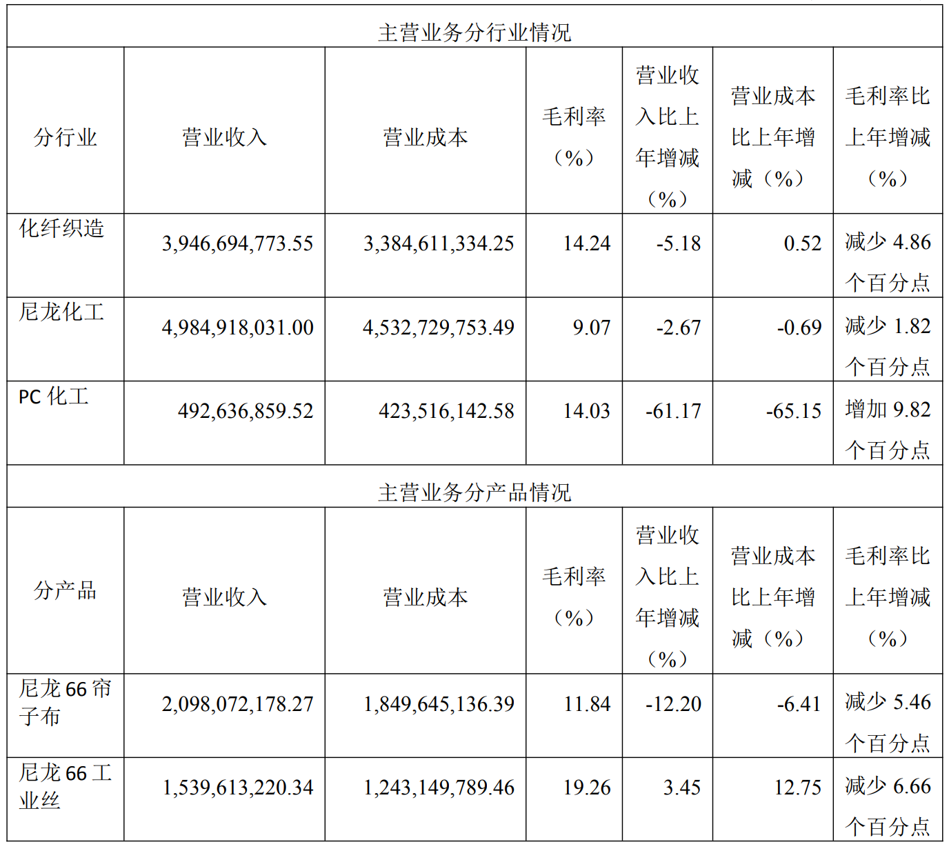 年报显示,神马股份核心业务板块呈现明显分化:尼龙66工业丝营收15.40亿元(+3.45%)、尼龙66切片27.88亿元(+4.70%)保持增长,但化纤织造行业收入39.47亿元(-5.18%)、PC化工行业收入4.93亿元(-61.17%)大幅萎缩,其中双酚A营收暴跌95.65%至0.31亿元。