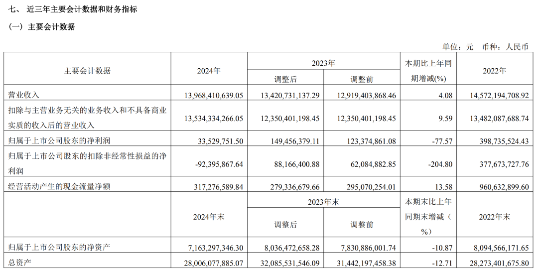 3月19日晚间,神马实业股份有限公司(以下简称“神马股份”)发布2024年年度报告。公司报告期实现营收139.68亿元,同比增长4.08%;归母净利润3353万元,同比下降77.57%。