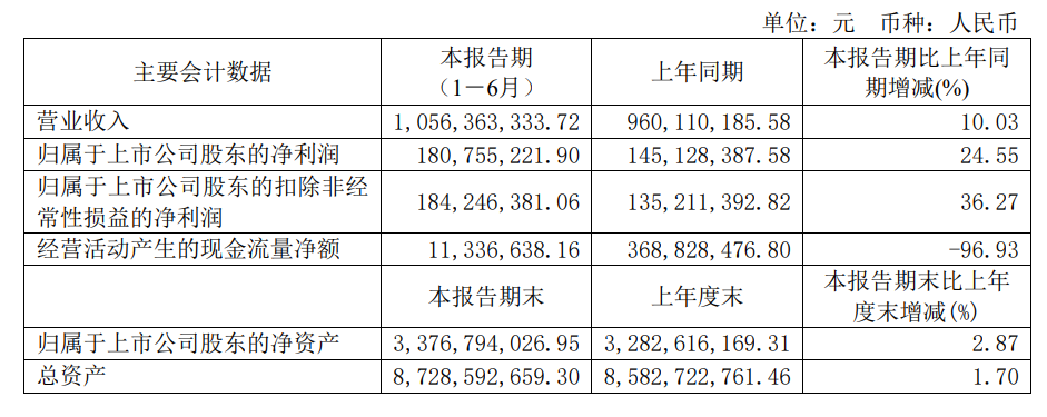 2023年上半年,杭州解百实现营业收入10.56亿元,同比增加10.03%;实现归属于上市公司股东的净利润1.81亿元,同比增加24.55%。