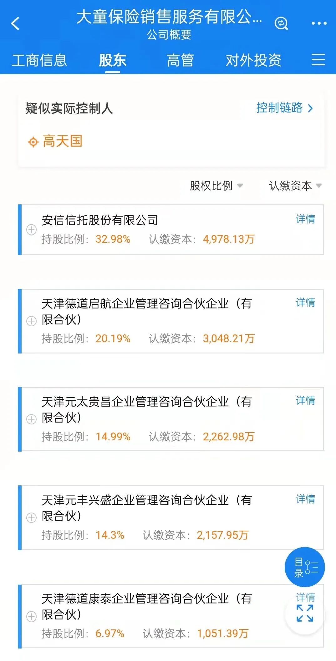 安信信托为大童保险第一大股东。公开信息显示,2016年11月,安信信托以5.075亿元自有资金参与大童保险增资,持有大童保险35%的股权,之后稀释为32.98%。此次股权拍卖将导致大童保险的大股东易主。