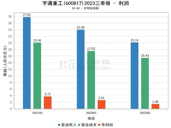 在利润方面,宇通重工2023年三季度的营业收入为20.14亿元,相比上年同期的23.98亿元,减少了16.01%。营业利润为1.51亿元,较上年同期的2.76亿元减少了45.29%。净利润为1.45亿元,较上年同期的2.61亿元减少了44.44%。毛利率为23.38%,较上年同期的26.87%有所下降。净利率为7.22%,较上年同期的10.89%也有所下降。这些数据表明,公司的营业收入、营业利润和净利润都出现了下滑,且毛利率和净利率也有所下降,这可能是由于市场竞争加剧,环卫设备业务收入下降所导致。