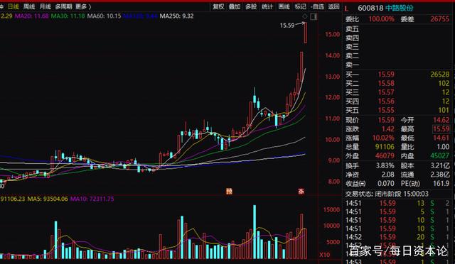 3月8日,中路股份有限公司(下称中路股份)股价高开后快速拉升,开盘5分钟后封死涨停板。截至当日收盘其股价为15.59元,上涨10.02%,总市值50.11亿元。上个交易日主力资金净流入3810.35万元,游资资金净流入2887.91万元,散户资金净流出1709.53万元。