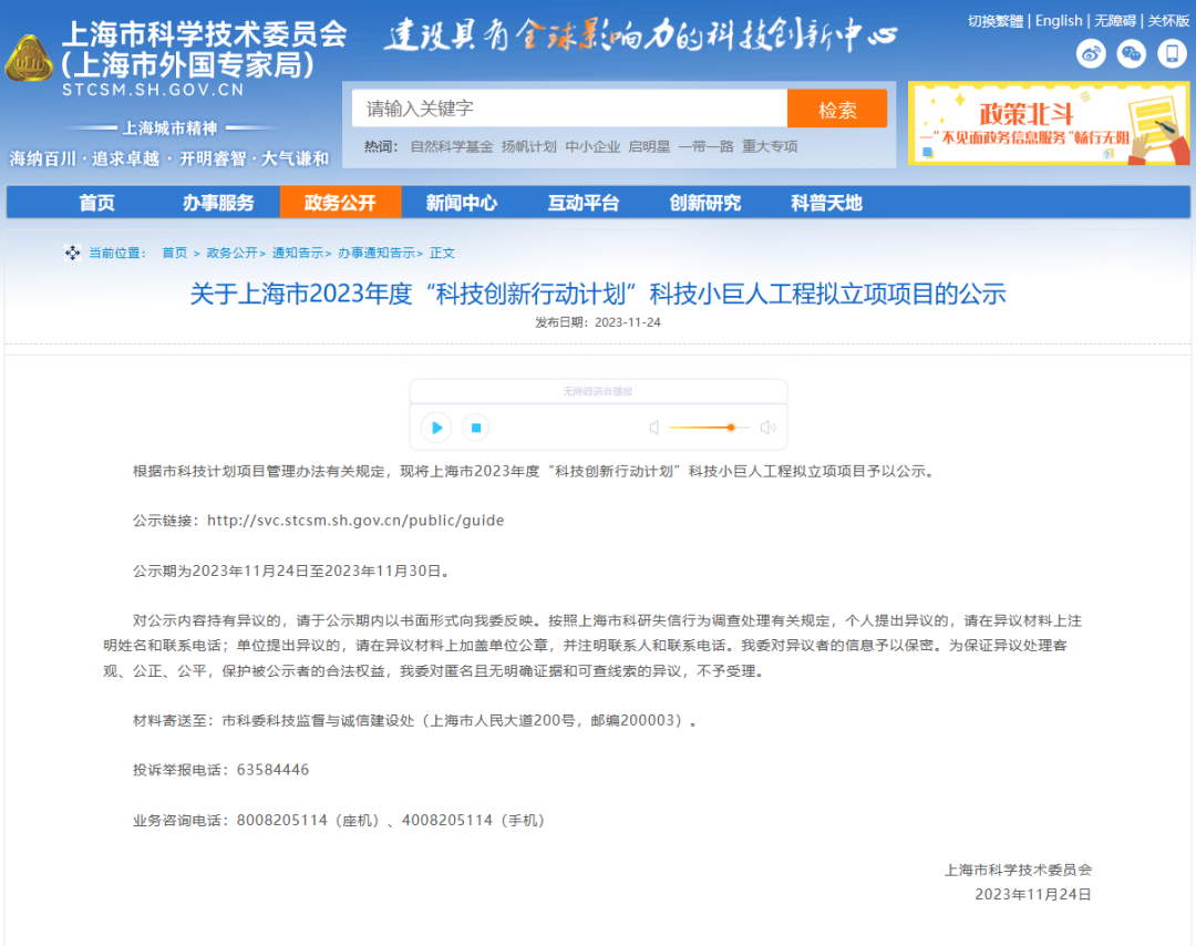 “科技创新行动计划”科技小巨人工程项目由上海市科学技术委员会、市经济和信息化委员会和市财政局共同实施,旨在打造一大批具有国内外行业竞争优势的科技小巨人企业。实施对象为从事符合国家和本市产业发展方向,具有科技创新能力强、市场竞争优势突出、发展潜力大的高新科技型企业,为上海深入实施创新驱动发展战略、加快建设具有全球影响力的科技创新中心提供支撑。