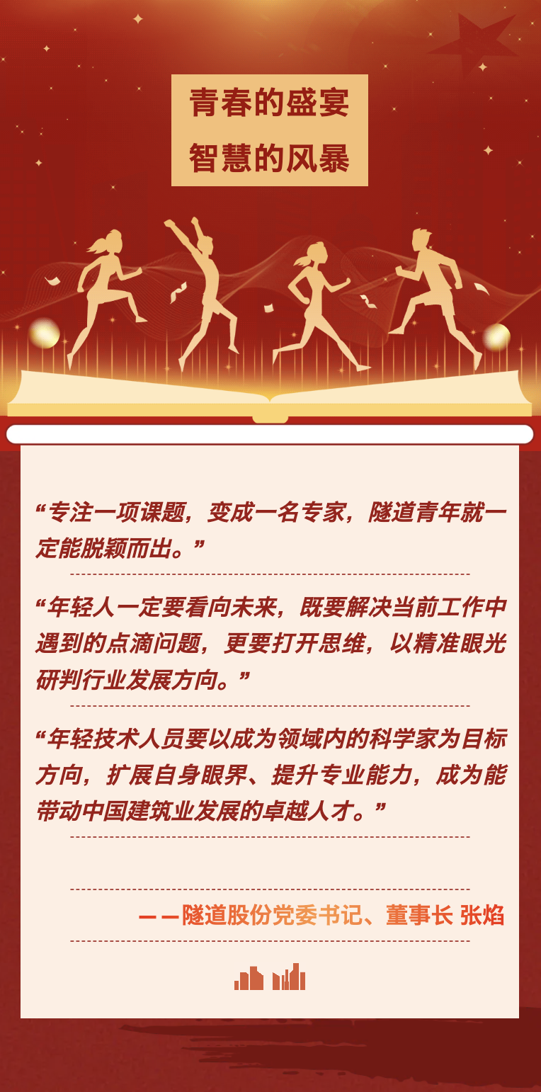 张焰董事长强调,隧道股份将持续为青年人才搭建更大的交流展示平台,依托“五大科创中心”为隧道青年提供深度的专业支持,让更多年轻人专注一个课题、变成一名专家,为社会、为公司做出更大贡献,并利用与行业头部企业、高校的广泛合作,助力隧道青年成长成才、脱颖而出。