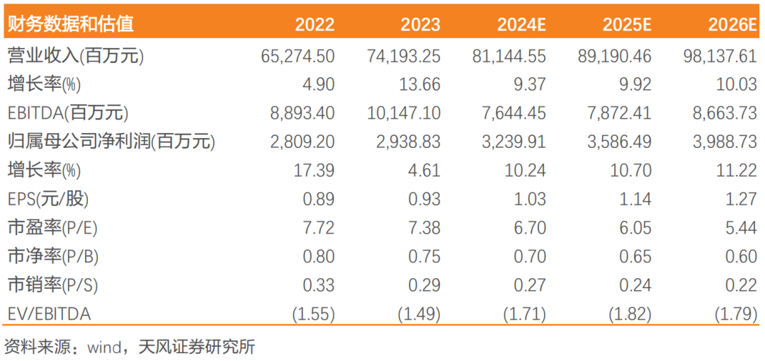 公司23年实现营收741.9亿,同比+13.7%,归母、扣非净利润为29.4、27.1亿,同比+2.9%、+10.4%;Q4单季公司实现营收272.9亿,同比-6.8%,归母、扣非净利润为14.5、12.9亿,同比-1.9%、+11.5%,Q4业绩承压主要系毛利率下滑较多。全年非经常性损益为2.26亿,同比减少1.7亿。公司中期及年底累计分红金额为11.6亿,分红比例为39.6%,对应4月19日股息率为5.4%,高股息地方国企投资价值凸显。考虑公司订单较快增长,我们上调公司盈利预测,预计24-26年归母净利润为32.4、35.9、39.9亿元(前值24、25年31.2、34.9亿),认可给予公司24年9倍PE,对应目标价为9.27元,维持“买入”评级。