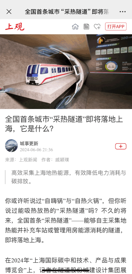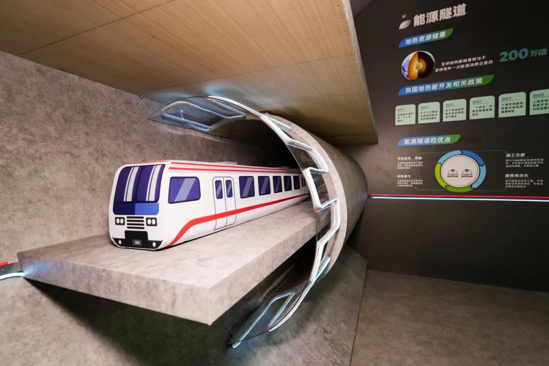 展会现场,隧道股份城建设计集团以剖面图的形式展示了能源隧道这一新技术。该技术利用城市隧道采集浅层地热能为建筑供暖制冷,降低温室气体排放,推动复合功能地下空间建设,助力城市低碳发展。