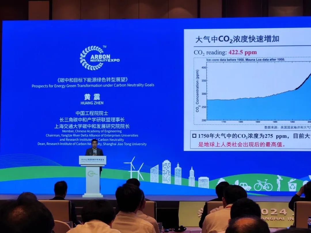 隧道股份双碳科创中心领衔院士——中国工程院院士黄震,在上海国际碳中和博览会主旨论坛中,作《碳中和目标下能源绿色转型展望》主题报告。
