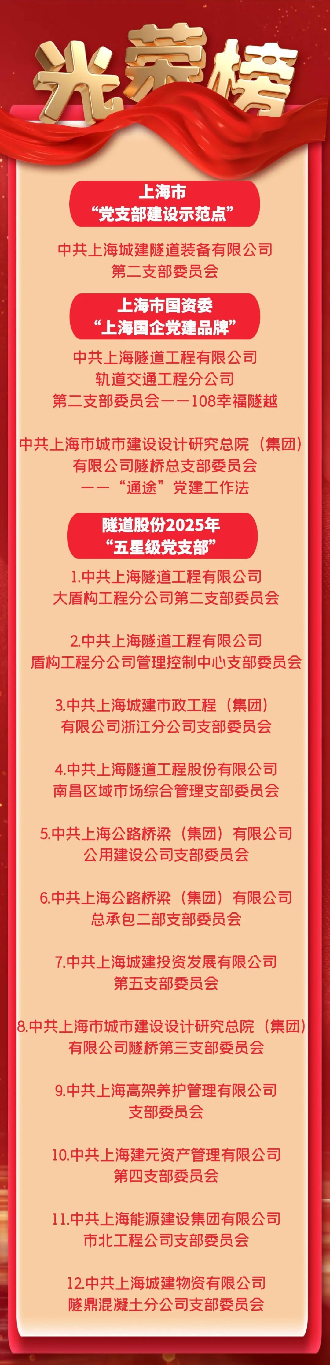会上,隧道股份党委副书记、工会主席王刚宣读《关于表彰上海市“党支部建设示范点”、上海市国资委“上海国企党建品牌”、隧道股份2025年“五星级党支部”等荣誉的通知》。
