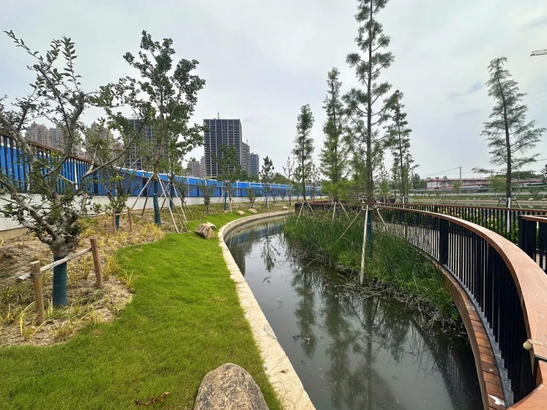 施工过程中,隧道股份项目团队采用“箱式砌块与绿化相结合”的工艺。通过生态松木桩,既保障水土稳定和设施安全,又为绿化植物提供良好的生长环境;同时,配套实施岸坡绿化工程,形成原木桩自然式驳岸,构建起“会呼吸”的柔性护岸体系,兼顾防洪安全与生物多样性保护,为河道筑起天然防护屏障。