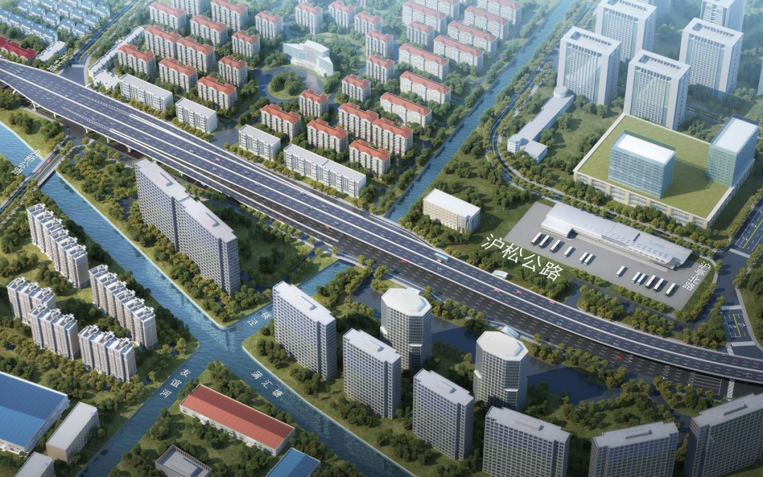 沪松公路(嘉闵立交-S32公路)快速化工程北接漕宝路快速路、嘉闵高架路,南至申嘉湖高速S32,全长约22.2公里,采用高架与地面双系统设计,其中高架为城市快速路标准,地面道路为省道二级公路。全线建成后,从松江前往上海主城区的通勤时间将缩短30分钟以上。