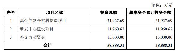 晋飞碳纤本次原拟发行的股票数量为2916.0594万股,不低于发行后总股本的25%。本次发行全部为新股发行,原股东不公开发售股份,最终发行数量经中国证监会注册后确定。晋飞碳纤拟募集资金5.89亿元,用于高性能复合材料制造项目、研发中心建设项目、补充流动资金项目。