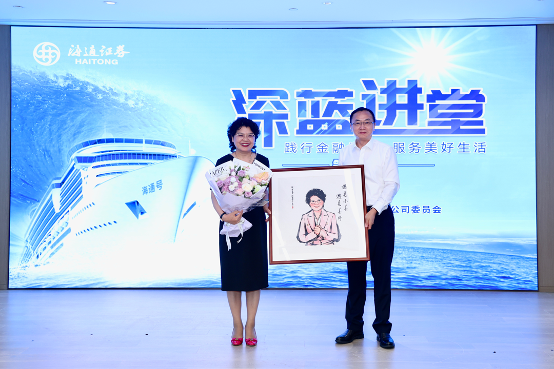 公司党委副书记赵永刚代表公司向主讲嘉宾卢小美赠送了由海通青年亲手绘制的礼物,表达感谢和祝福。