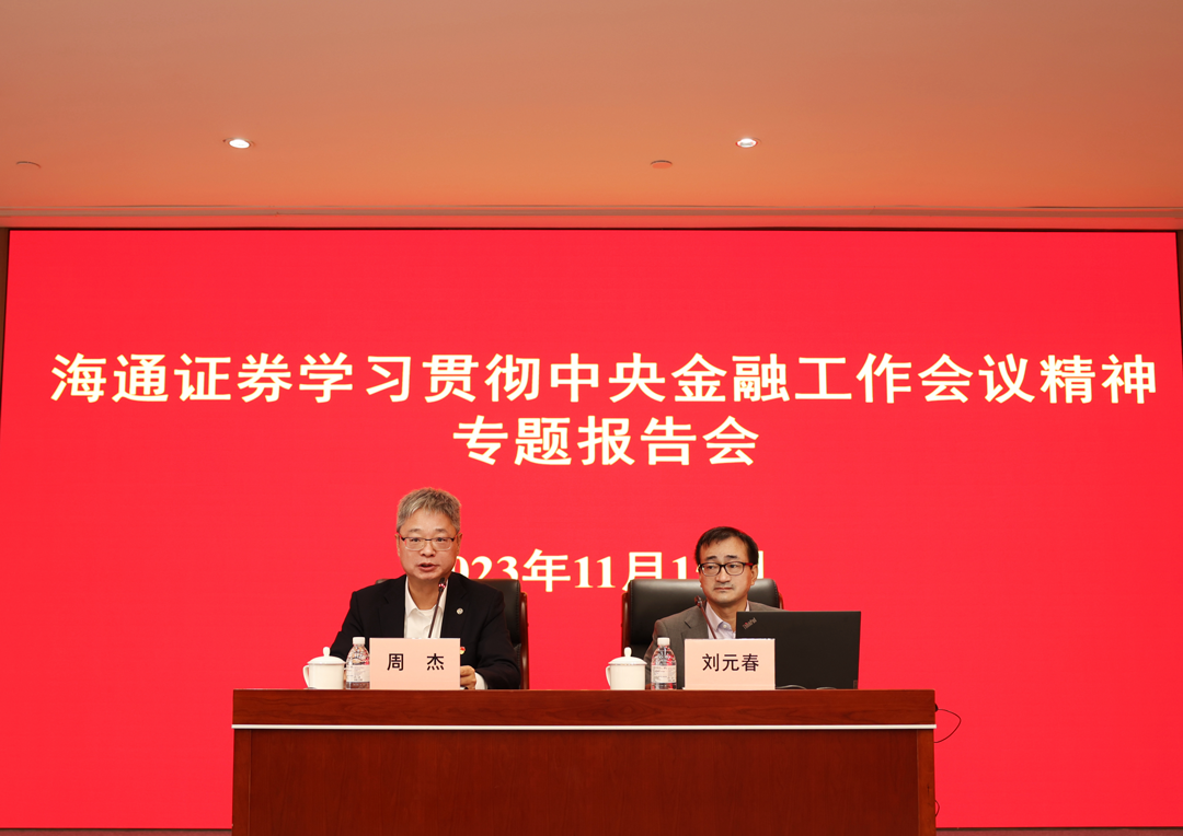 11月15日下午,海通证券党委举办学习贯彻中央金融工作会议精神专题报告会暨党委理论学习中心组(扩大)会议。上海财经大学党委副书记、校长刘元春教授受邀作专题辅导报告,宣讲中央金融工作会议精神。公司党委书记、董事长周杰主持会议。公司党政领导班子成员,公司各部门、分公司、子公司干部员工通过视频直播和现场集中相结合的方式参加学习。