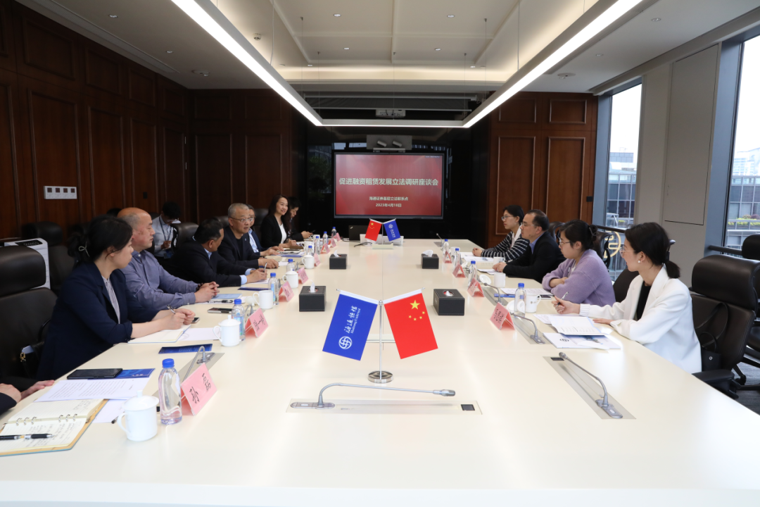 2023年4月,联系点在子公司海通恒信举办促进融资租赁发展立法调研座谈会。市人大常委会法工委对融资租赁行业情况进行深度调研,就企业关注的相关立法需求展开座谈。与会人员踊跃发言,提出了许多建设性、针对性的立法建议。