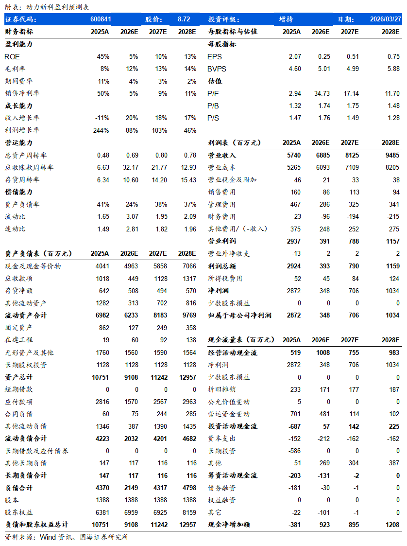 盈利预测和投资评级 1.新科动力具备AIDC电源用发动机能力,相关业务有望带动公司快速增长;2.新领导层上任,“十五五”目标双倍增,公司有望向社会资源战略进一步转向,并优化提升产品结构与经营效率。我们预计公司2026-2028年实现营业收入68.9、81.3、94.9亿元,同比增速+20%、+18%、+17%;实现归母净利润3.5、7.1、10.3亿元,同比增速-88%、+103%、+46%。EPS分别为0.25、0.51、0.75元,2026-2028年归母净利润对应当前股价的PE估值分别为35、17、12倍,维持“增持”评级。
