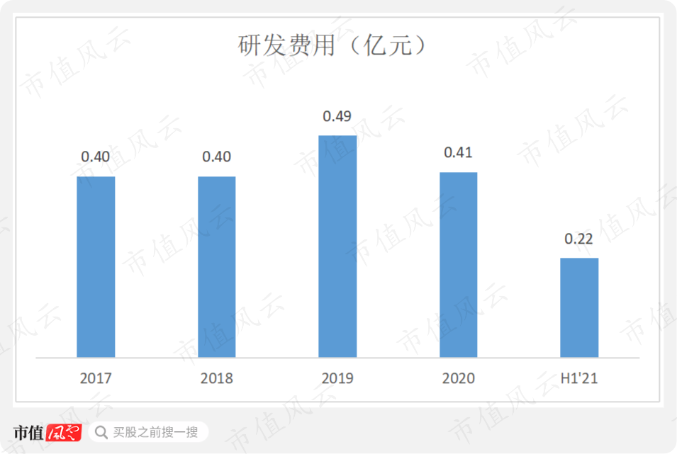 从研发投入上也可以看出,公司的破局信心并不大,2017-2020年的研发费用金额均在5000万以下,且没有明显增长。
