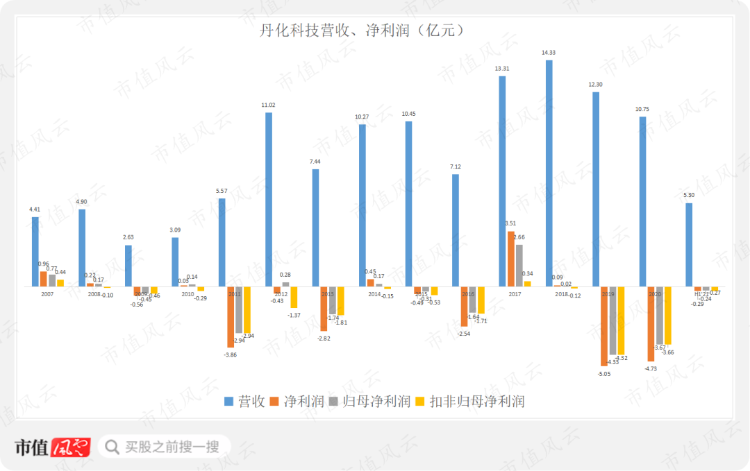 丹化科技上市以来,净利润正一年负一年,在带帽的边缘疯狂试探。