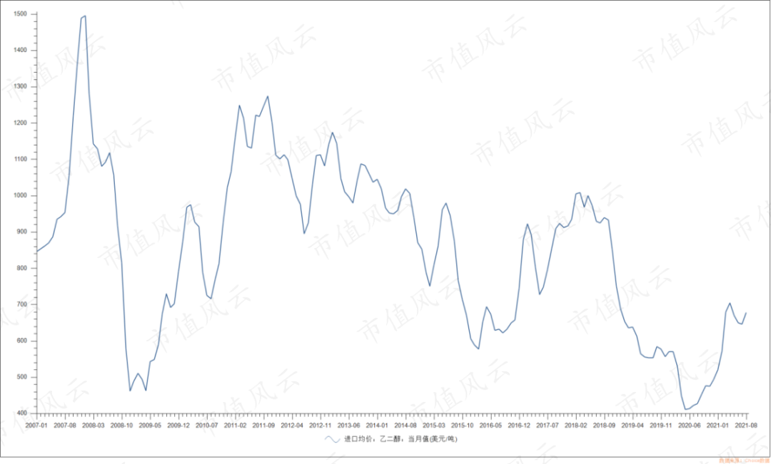 事实上,乙二醇属于大宗化工产品,价格受国际油价波动、宏观经济环境变化等因素影响较大,与石油价格高度正相关,周期性较强。