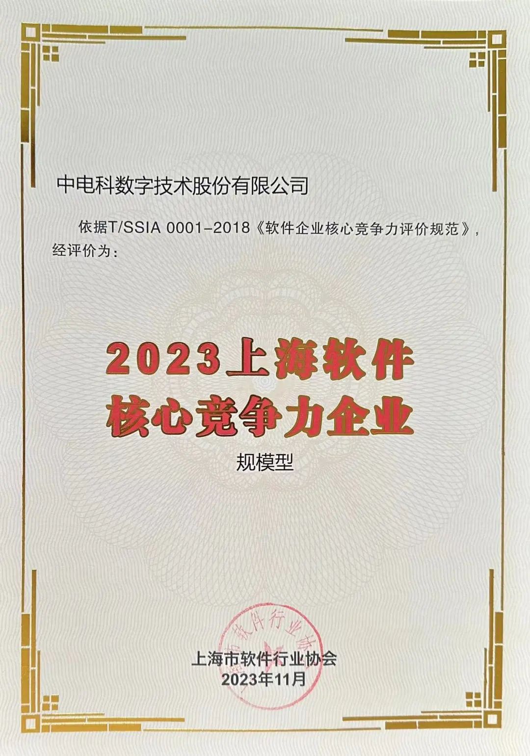 上海市软件行业协会为树立上海软件企业品牌形象,加强软件企业竞争力宣传力度,促进软件产业高质量发展,结合上海市软件行业实际情况,开展了“2023软件企业核心竞争力评价活动”。依据《软件企业核心竞争力评价规范》(T/SSIA 0001-2018),以行业统计数据为基准,对参与企业的竞争力要素进行了评价,并结合专家评议,产生了2023上海软件企业核心竞争力评价结果,中电科数字技术股份有限公司及其子公司上海华讯网络系统有限公司双双上榜“2023上海软件核心竞争力企业(规模型)”。