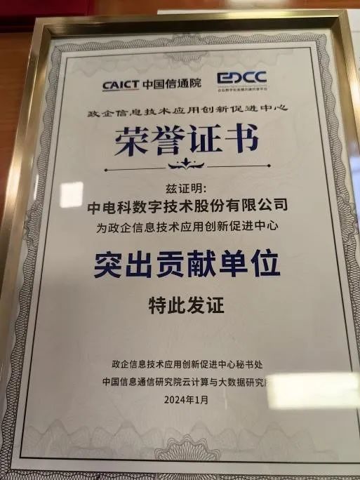 1月22日,EDCC政企信息技术应用创新促进中心年会在北京市中国信息通信研究院科研楼召开。电科数字受邀参加政企信息技术应用创新促进中心2024年新年会议,并荣获政企信息技术应用创新促进中心年度突出贡献奖、突出贡献专家奖。