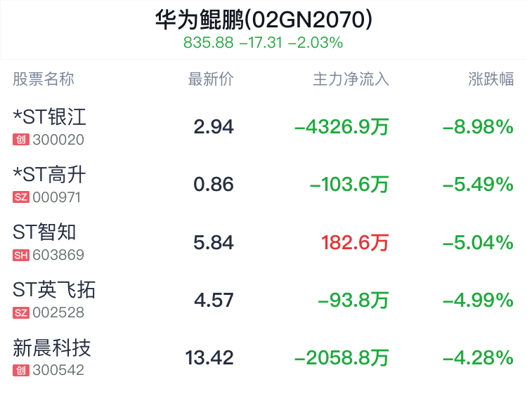 从资金上来看,截止发稿,华为鲲鹏概念主力净流入为-6.03亿,其中科蓝软件受到资金热捧,主力净流入655.50万;拉长时间线来看,该板块近20日主力资金净流入-108.61亿。