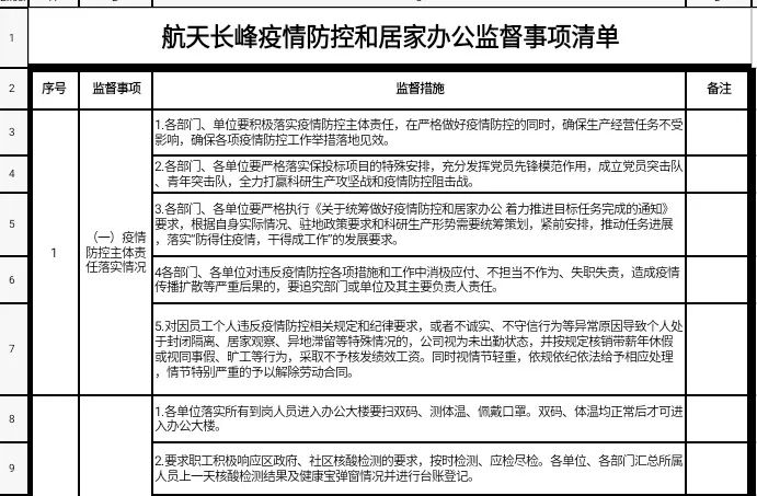 针对居家办公、点对点等防控要求,纪委协助党委督促细化落实统筹疫情防控和科研生产经营要求,行政、人力资源、纪检部门协同制定细化措施,强调疫情防控居家办公工作和纪律要求,督促各部门(单位)主要负责人压实主体责任,提升居家办公工作绩效,为实现整体目标效果,公司本部办公室、人力资源部及其他职能部门协同联动,通过调整细化部门月度考核评分规则、用实绩效考核“指挥棒”,引导带动全体员工办公和防疫“两不误”。