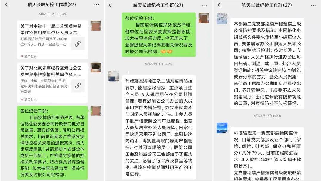 在近期疫情防控形势严峻的情况下,航天长峰纪委在上级纪委和公司党委领导下,坚持胸怀稳经济大盘和疫情防控“国之大者”,聚焦公司科研生产经营和疫情防控实际,实施“联合式+专题式+点穴式”三位一体监督,努力保障疫情防控和科研生产经营任务“两手抓、两不误”。