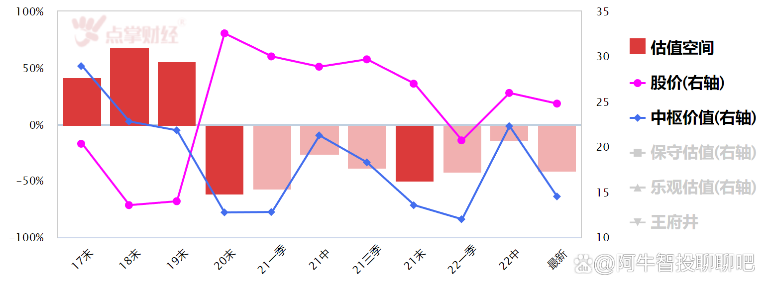 从估值空间来看,王府井中枢价值空间为-41%,中枢价值14.50元,股价运行在风险区,估值区间7.70--25.30元。估值空间环比上升。