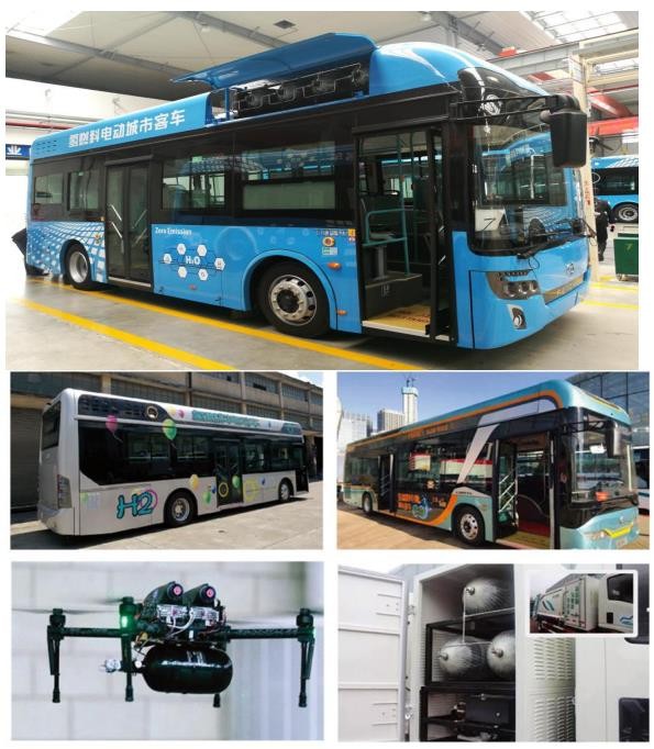 其中,对“氢燃料电池用铝内胆碳纤维全缠绕复合气瓶”的具体说明为:“公司拥有亚洲地区最具规模的、技术水平最先进的铝内胆碳纤维全缠绕复合气瓶的设计测试中心及生产线,已具有自出知识产权,产品种类规格齐全,可依据客户需求定制。由于其具有压力高、重量轻、安全性能好、环境适应能力强和抗热性好等特点,所生产的 35MPa 高压铝内胆碳纤维全缠绕复合气瓶(储氢气瓶)已批量应用于氢燃料电池汽车、无人机及燃料电池备用电源领域。”