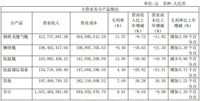 另外公告还显示,公司主营业务为气体储运装备制造,不涉及氢能源电池行业,且公司储氢瓶等相关产品的销售收入相比公司其他主营产品占比较小,对公司业绩贡献度有限。