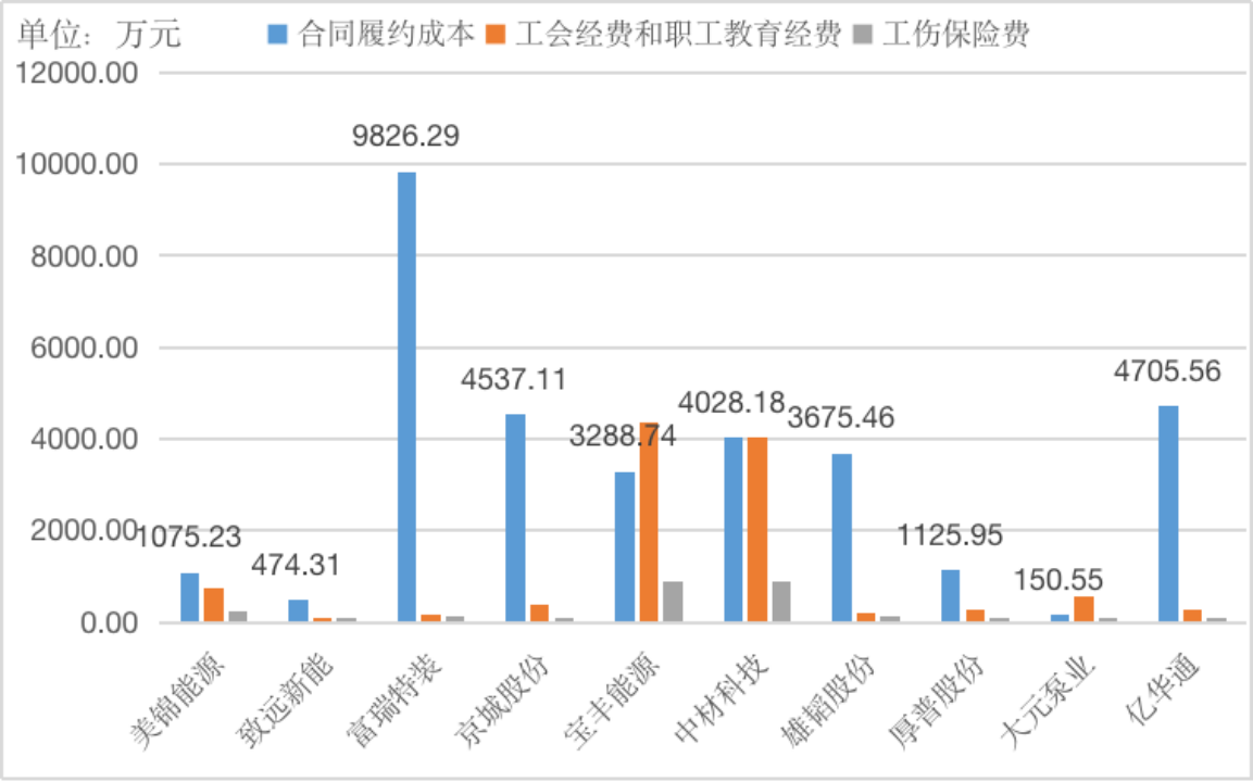 另外,京城股份重视债权人保护,2021年合同履约成本达4537万元,位于“氢能源”赛道中间位置,仅次于富瑞特装、亿华通;其次,在维护员工权益、安全生产制度方面,京城股份为职工提供工会经费和职工教育经费396万元,工伤保险费108万元(见图8)。