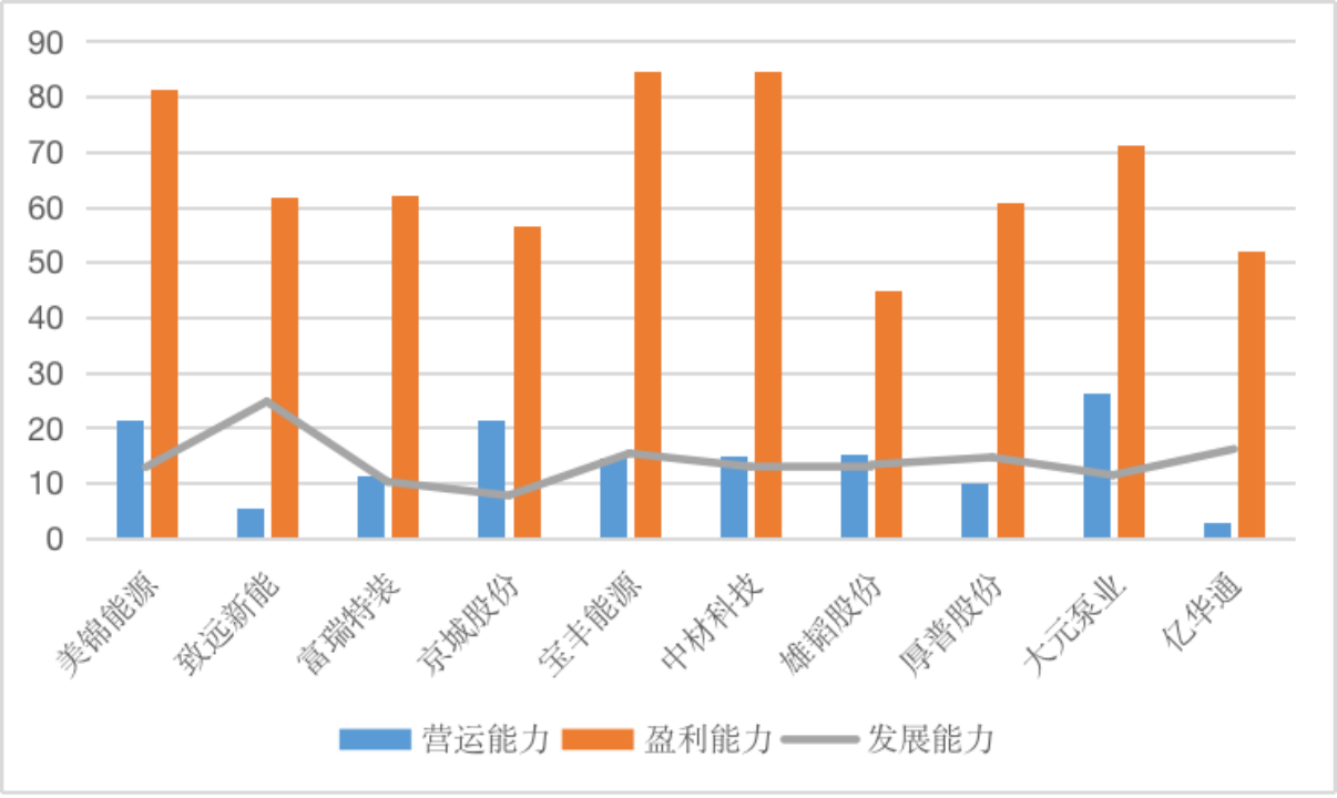 图7 “氢能源”赛道企业营运盈利及发展能力(100分制)
