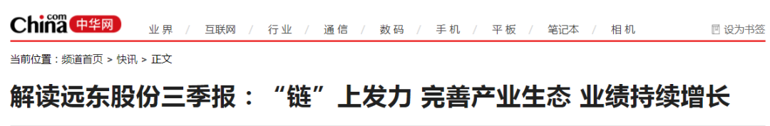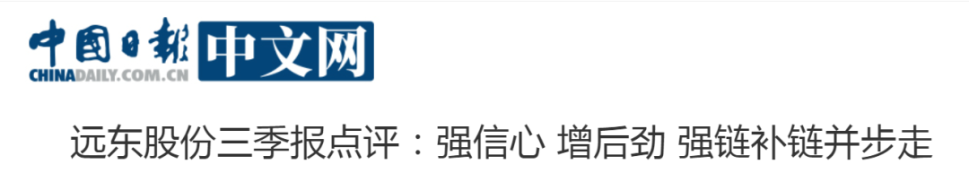 随着A股进入2022年前三季度业绩密集发布期,一批业绩报喜的上市公司受到媒体广泛关注。远东智慧能源股份有限公司(简称:远东股份股票代码:600869)前三季度营业收入、归母净利润均创同期新高,受到中国日报、中华网、中国财经新闻网等媒体报道与转发。
